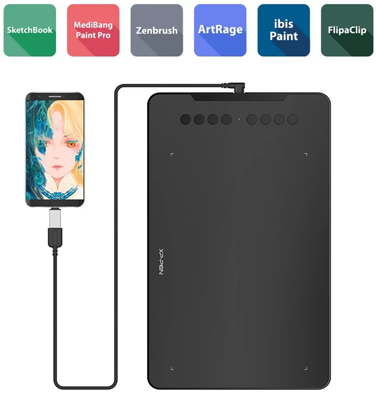 قابلیت اتصال به تلفن همراه و تبلت، که با استفاده از OTG به شما این امکان را میدهد که از این تبلت گرافیکی برای کار با نرمافزارهای مختلف در تلفن همراه یا تبلت خود استفاده کنید.