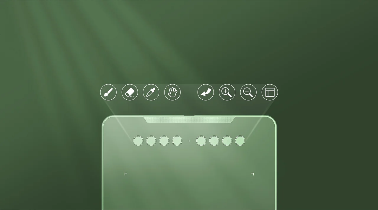 دارای 8 کلید مخصوص برای تنظیمات سریعتر، مانند انتخاب اندازه قلم، حذف یک خط و یا زوم کردن تصویر، که به شما امکان میدهد با سرعت بیشتری به کار خود بپردازید.